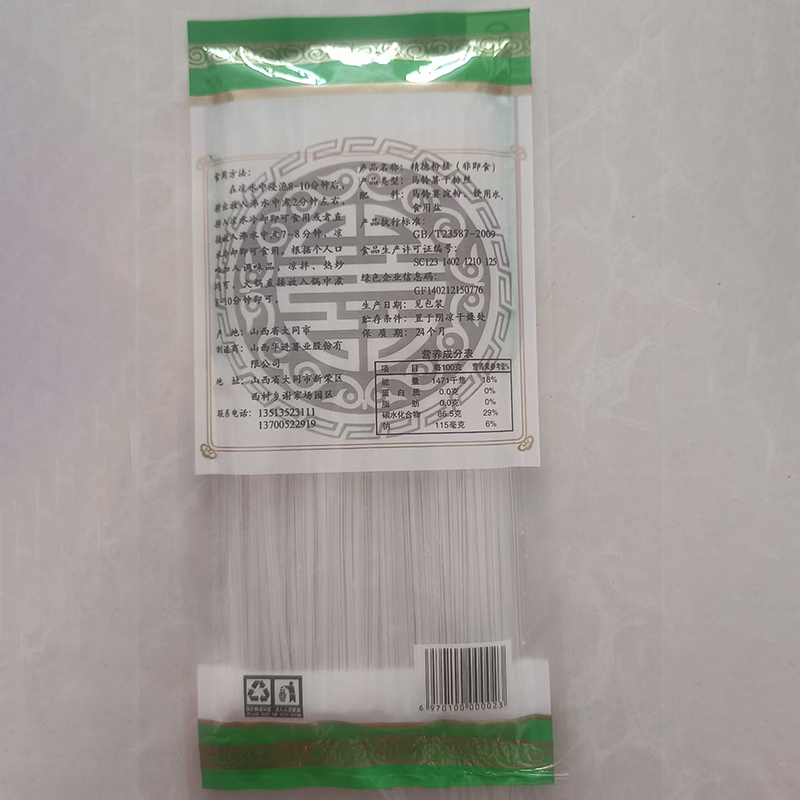 Картофельная кристаллическая вермишель, от крахмала в машину до готовой вермишели,Фенпи из машины, для полной автоматизации работы, ингредиенты картофельный крахмал, соль, питьевая вода, все производство в соответствии с национальным стандартом GB17400-2015 стандартов, полностью воплощает производство зеленых, охраны окружающей среды, природных, безопасных, высококачественных, питательных концепции производства, внешний вид продукта является регулярным, бар тип как один, цвет и блеск однородности кристалла, чистота и гигиена, легко хранить, легко транспортировать. Гигиеничен, удобен в хранении и транспортировке. Он устойчив к кипячению и замачиванию, имеет хорошую текстуру, разнообразные способы приготовления, такие как жарка, тушение и варка, легко сочетаются с различными блюдами и становятся хорошим продуктом на столе. Характеристики продукта: 90 г вермишели, 150 г вермишели.