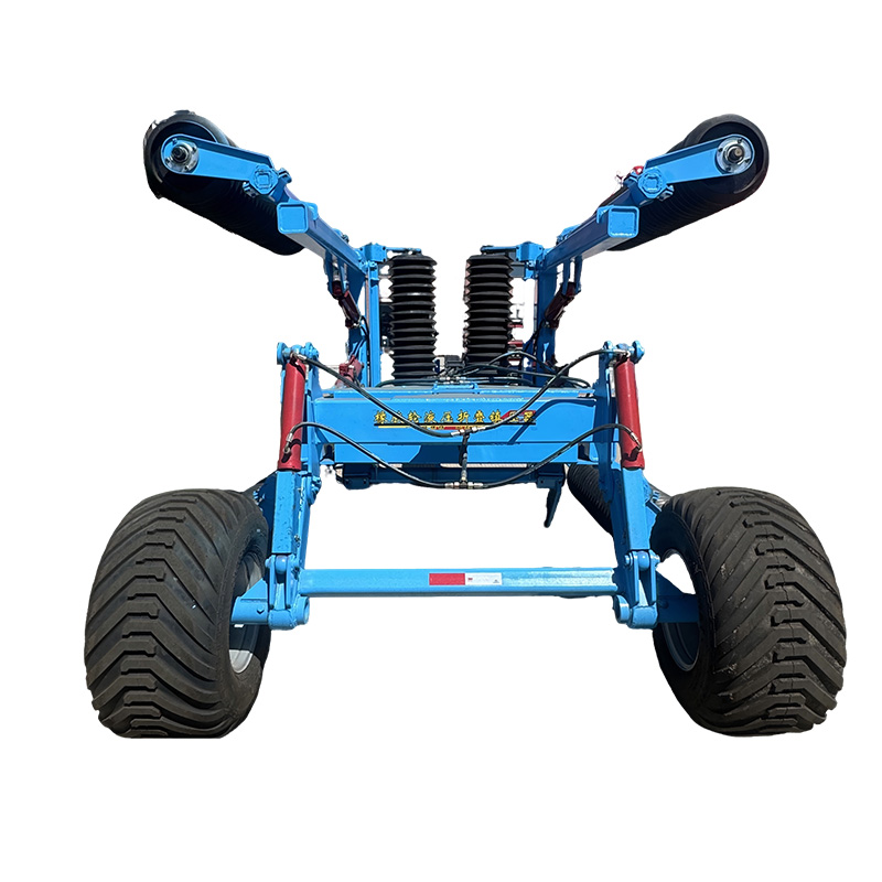 6. Транспортировка удобная быстрая: Оснащена гидравлическим складывающим устройством, управление простое, складывание быстрое, что облегчает транспортировку и перемещение между участками, транспортные колёса усилены 16 слоями корда, применяются бескамерные шины 400-й размерности с установленной камерой внутри, грузоподъемность одной шины около 3—4 тонн, прочные и долговечные. Передняя складная конструкция для транспортировки удобна, подходит для межхозяйственных работ, машину сразу можно грузить на прицеп и отправлять с завода целиком. Погрузка и выгрузка просты и легки.