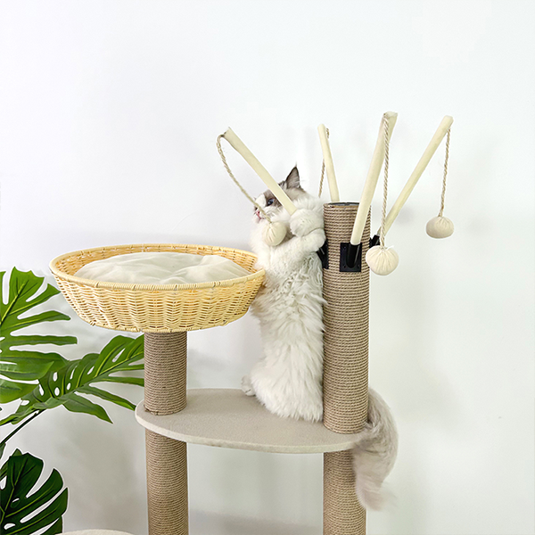 Все сырье экологически чистое и безопасное в использовании. Цветок кремового цвета сделан из дерева, плюшевой ткани, а затем из кукольного хлопка, а затем сшит в виде сетчатого цветка. Этот эффект может заставить вашего котенка чувствовать больше прикосновений и безопасности, когда он наступает на него или спит на нем! Справа внизу также находится рама, сплетенная из банановых листьев. Нижняя пластина представляет собой доску, соответствующую европейским и американским стандартам. Кремовый цвет, который вы видите, получен за счет использования доски со слоем плюшевой ткани, добавленной для того, чтобы она выглядела аккуратнее и была более комфортной для кошки.