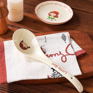 На ложке нарисована миниатюрная девочка, на ручке нанесена надпись «Маленькая девочка», что соответствует стилю серии. Глубина ложки подходит для суповой тарелки, позволяя надежно набирать суп, не проливая его. Керамический материал легко моется, удобен для набирания супа во время семейных обедов, практичен и декоративен, является «лучшим помощником» для супов, делая русские обеды более уютными.