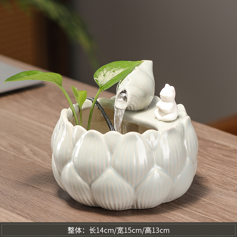 Фонтан изготовлен из прочной высокотемпературной керамики, отличающейся изысканной текстурой и долговечностью. Поверхность легко очищается, устойчива к влаге и сохраняет эстетичный вид на протяжении долгого времени. Спокойный звук текущей воды помогает расслабиться и создать атмосферу умиротворения.