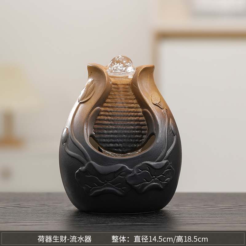 Название изделия — «Лотос приносит удачу» — звучит как «Гармония приносит богатство» (в переводе «гармония рождает достаток»), что отражает важный принцип восточной философии: гармоничные отношения и спокойствие ведут к процветанию. Благодаря этому фонтану не только украшается интерьер, но и создаётся особая духовная атмосфера.
