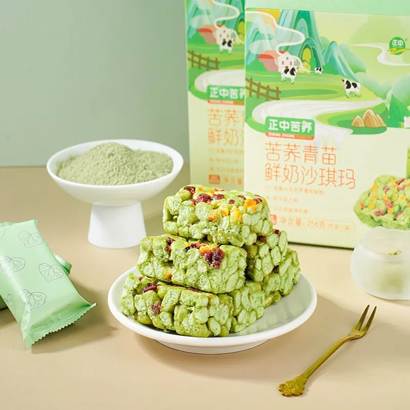 Эта шацима из зелёных ростков гречихи с молоком (со вкусом апельсиновой цедры и клюквы) дарит неповторимый вкус, отличающийся от традиционного среднеазиатского «Чак-Чак».