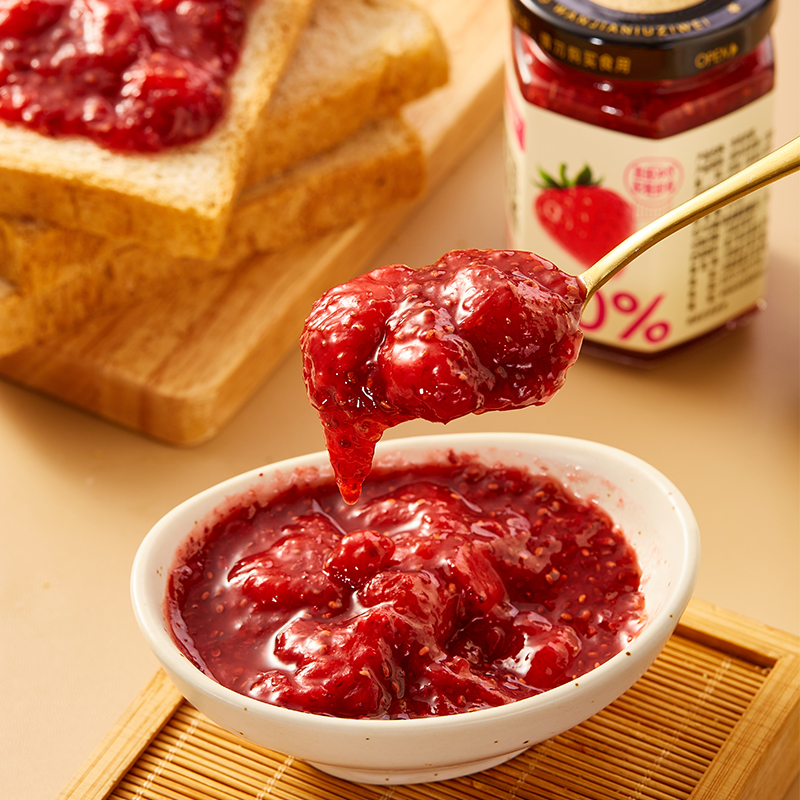 С содержанием клубники ≥90% каждая ложка наполнена сочными волокнами фруктов, дарящими при дегустации аутентичный кисло-сладкий вкус свежей клубники. Сочный и насыщенный фруктовый аромат чист и неподделен. Нежная сладость желтого сахарного песка смягчает легкую кислинку клубники, создавая вкус, который не является ни приторным, ни тяжелым. Скрытые в джеме семена чиа придают ему нежную хрусткость, добавляя полезные свойства, которые сочетают в себе вкус и легкость.