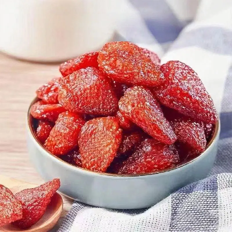 2.Мы тщательно отбираем высококачественную клубнику и проводим многоэтапный процесс, включающий мойку, нарезку, сахаризацию, выпечку, сушку, сортировку и упаковку, чтобы эффективно сохранить её вкус и питательные вещества.