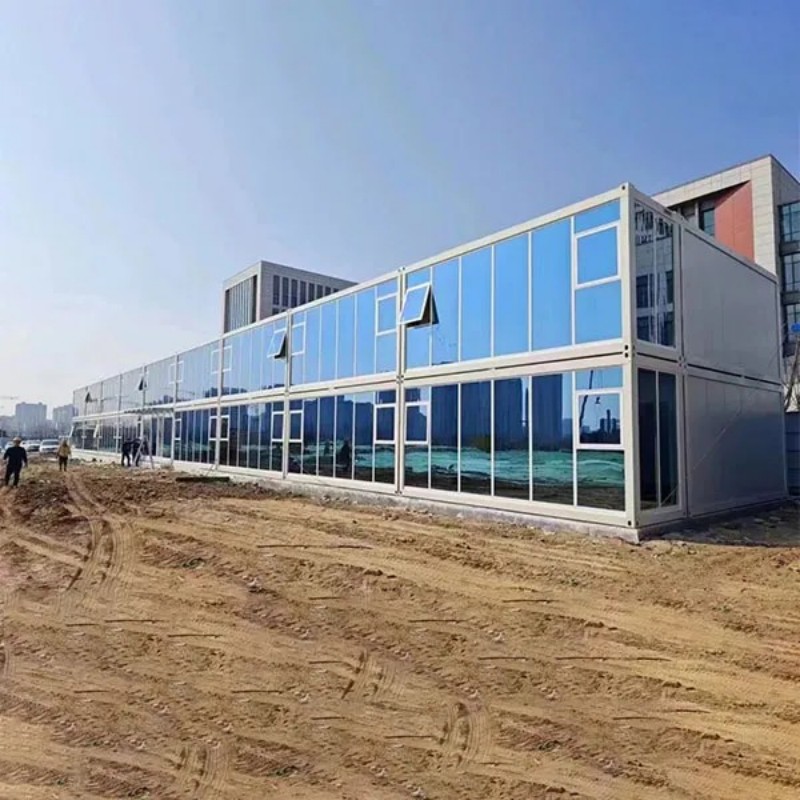 Контейнерные модульные здания на основе облегченной стальной рамы интегрируют стены, кровлю, системы водоснабжения и электроснабжения заводской готовности. Внутренняя отделка завершается до выхода с завода, а на месте требуется только установка краном для немедленного ввода в эксплуатацию — время монтажа одного модуля сокращено до 1 часа. Используются оконные и дверные конструкции из алюминия с терморазрывом и тройной стеклопакет в сочетании с сэндвич-панелями из высокоплотного пенополиуретана. Коэффициент теплопередачи составляет всего 0,3 Вт/(м²·К), что обеспечивает тепло зимой и прохладу летом, а также высокую звукоизоляцию.