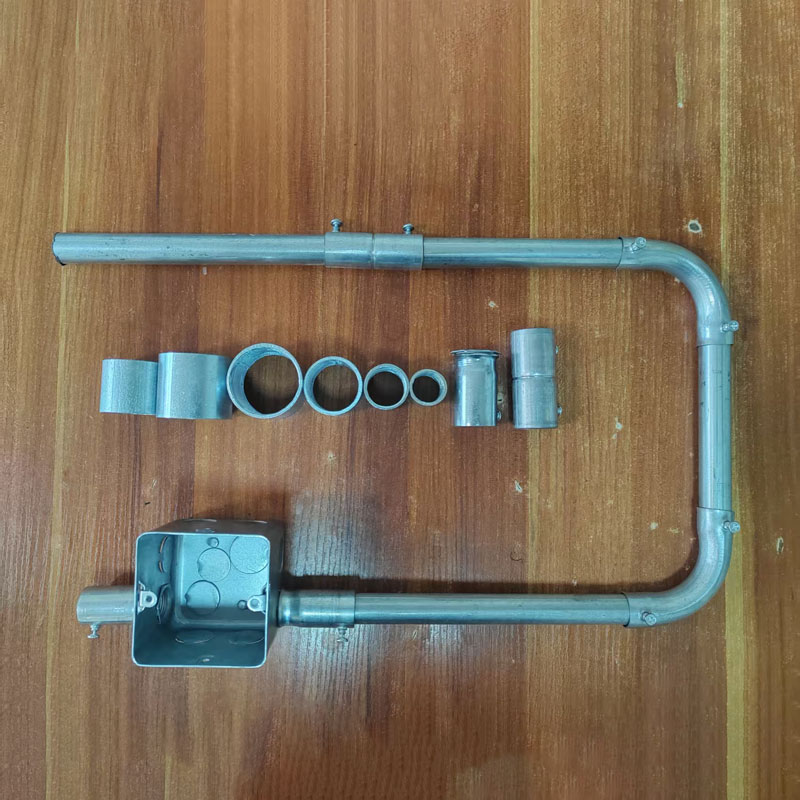 Является ключевым аксессуаром для соединения двух прямых труб, так что трубопровод образует непрерывный канал. Как правило, они делятся на три типа: натяжной, натяжной и вращающийся. Прямое соединение с застежкой предназначено для соединения оцинкованных проводов KBG и прижима их к трубам с помощью удерживающих щипцов, удобных в эксплуатации, плотно соединенных и не требующих пересечения заземленных линий; Нажимные и вращающиеся обычно используются для подключения оцинкованных труб JDG, но также могут использоваться для подключения оцинкованных труб KBG, плотное соединение осуществляется с помощью плотного натяжного трубопровода верхней проволоки трубы, а вращающийся тип имеет характеристики большого натяжения и сильной стабильности. Типичные внешние диаметры: F 16, F 20, F 25, F 32, F 40, F 50, толщина стенок около 1,0 - 1,5 мм, длина 50 - 120 мм