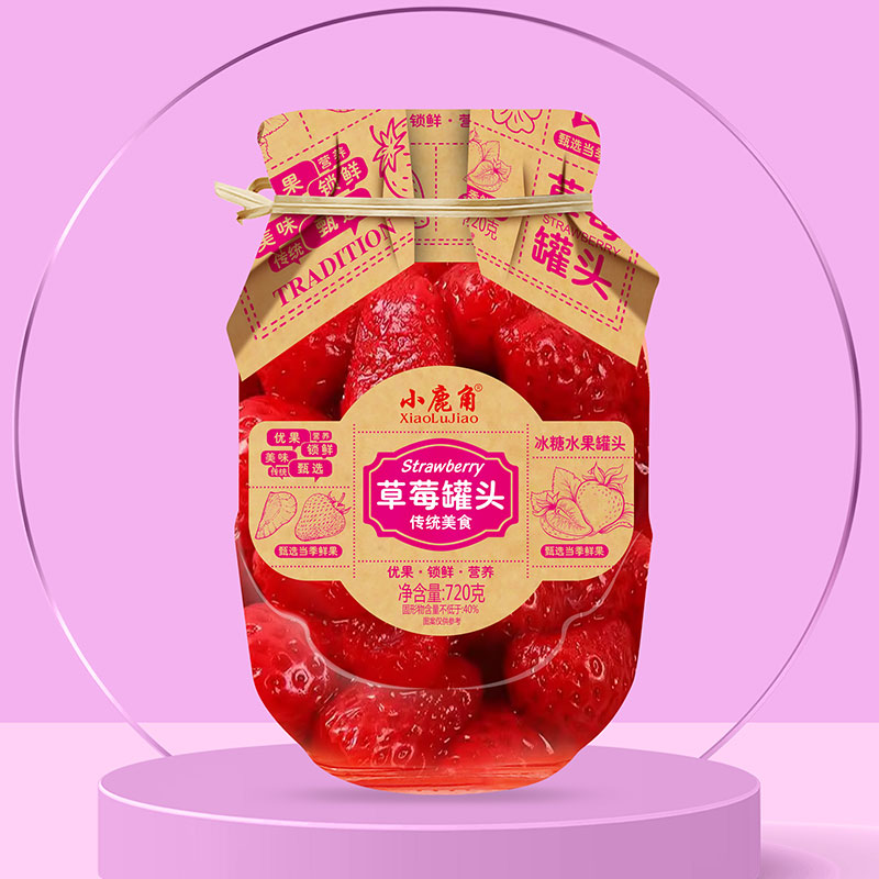 Консервированная клубника «Сяо Луцзяо» отбирает свежую сезонную клубнику, каждую ягоду вручную, гарантируя насыщенные и алые плоды. Применяется технология медленной варки при низкой температуре, идеально сохраняя нежную текстуру и натуральный аромат клубники. Ярко-красная мякоть нежно плавает в прозрачном сиропе, тая во рту с идеальным балансом кислого и сладкого.