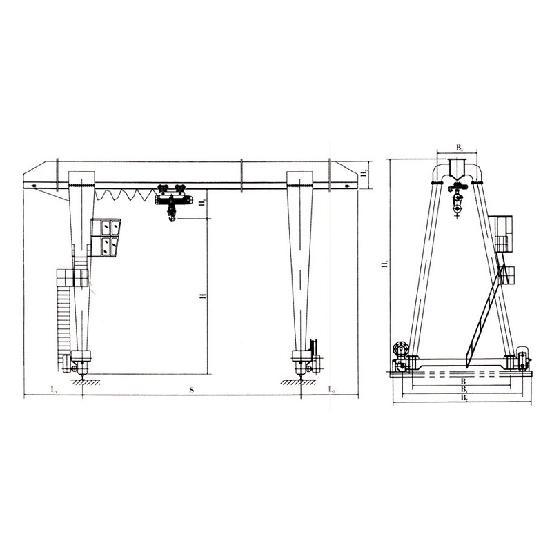 1. Козловой кран с электрической талью типа MH/MHE используется в комплекте с электрическими талями типов CD1, MD1 и другими, представляя собой рельсовый кран малой и средней грузоподъемности. В зависимости от количества электрических талей, подразделяется на два вида: козловой кран с электрической талью типа MH (одна таль) и козловой кран с электрической талью типа MHE (две тали).