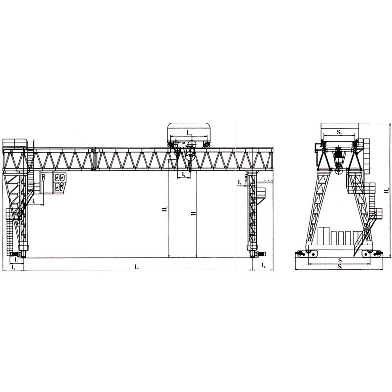 2. Козловой кран типа MGH с ферменной двухбалочной конструкцией (с одной тележкой) и козловой кран типа MEH с ферменной двухбалочной конструкцией (с двумя тележками), использующие лебедочную систему в качестве подъемного механизма, с грузоподъемностью 5-200 т и пролетом 7,5-50 м.