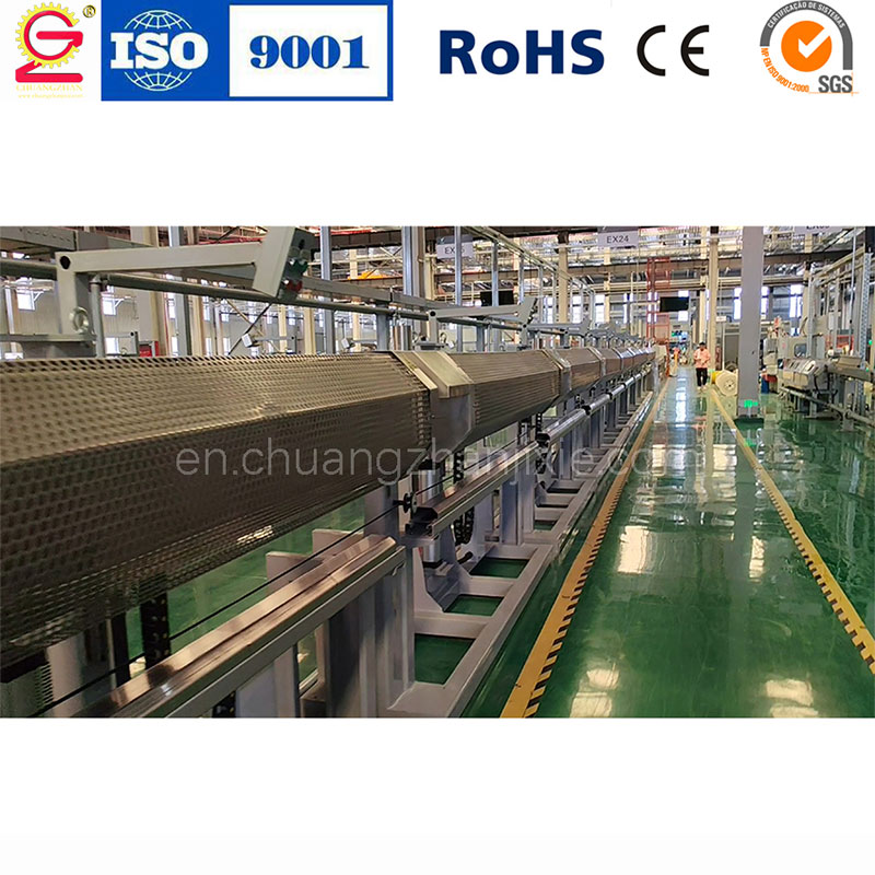 Горизонтальная вулканизационная печь горячего воздуха с двухступенчатым технологическим процессом (шоковая/ударная печь, последующие печи), эффективность увеличена в 3–4 раза. Дополнительно возможно использование печи с циркуляцией горячего воздуха, адаптированной к специальным типам кабелей, рабочая длина регулируется.