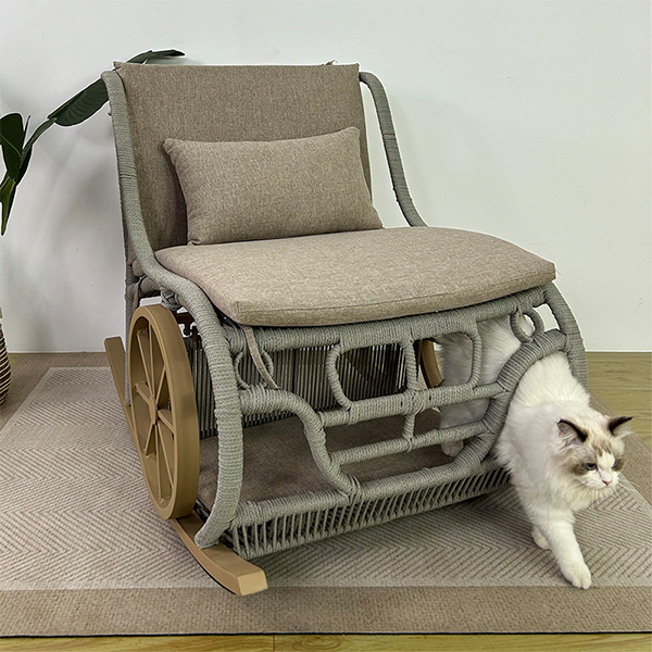 Подушка сиденья изготовлена из водонепроницаемой губки и ткани. Учитывая комфорт и безопасность домашних животных, ткань очень мягкая и имеет определенную абразивность. Он не изменится, не сломается и не повредит кожу питомца. Он доступен в различных цветах и может быть изготовлен по индивидуальному заказу. Изготовленный из пищевого полиэтиленового ротанга, он выдерживает более 3000 часов использования на открытом воздухе под солнцем и дождем и имеет гарантию 60 месяцев.