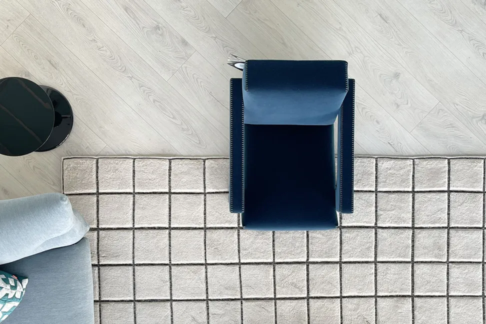 Кресло Utrecht, представленное в нашем выставочном зале, имеет синюю бархатную обивку и конную строчку, которая определяет его периметр.