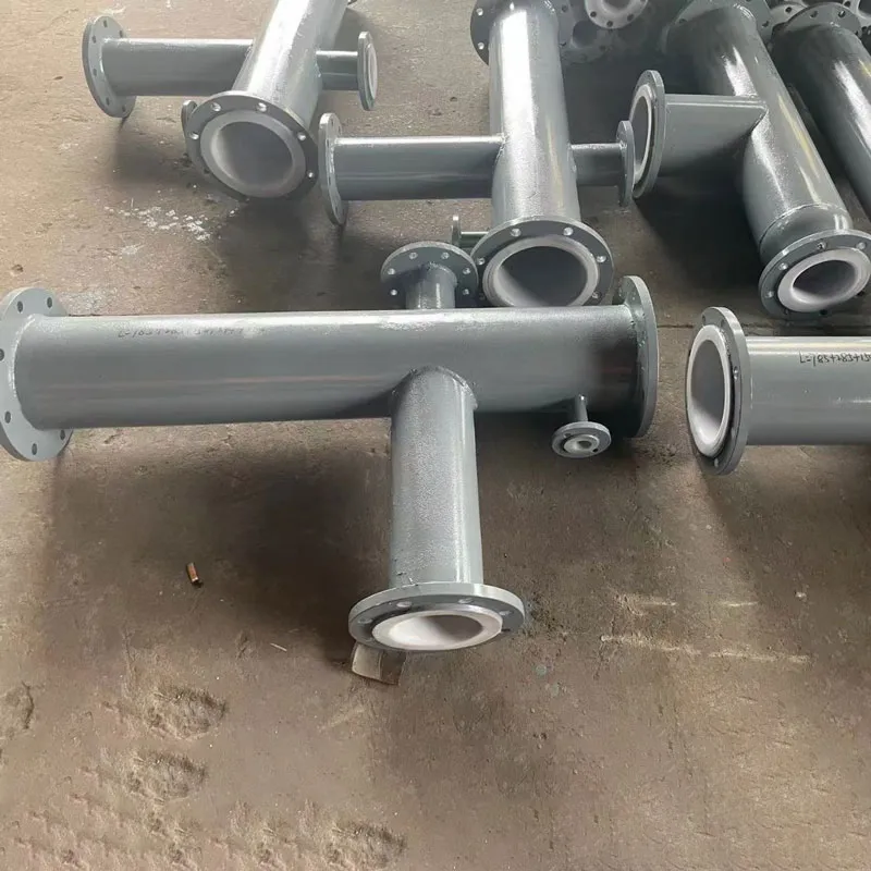 Крестовины стальные с футеровкой PO (полиолефином) изготавливаются по технологии горячего ротационного формования, что обеспечивает бесшовность футеровочного слоя, отсутствие пузырей и гладкую поверхность. Шероховатость внутренней поверхности Ra≤0,008 мм, что значительно снижает гидравлическое сопротивление, особенно подходит для транспортировки кристаллизующихся сред. Устойчивы к воздействию 98% серной кислоты, 40% азотной кислоты и других агрессивных сред, превосходя по характеристикам стальные крестовины с футеровкой PE.