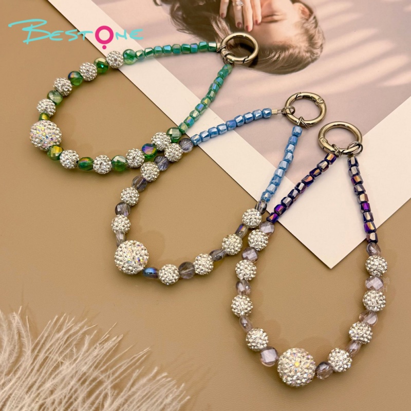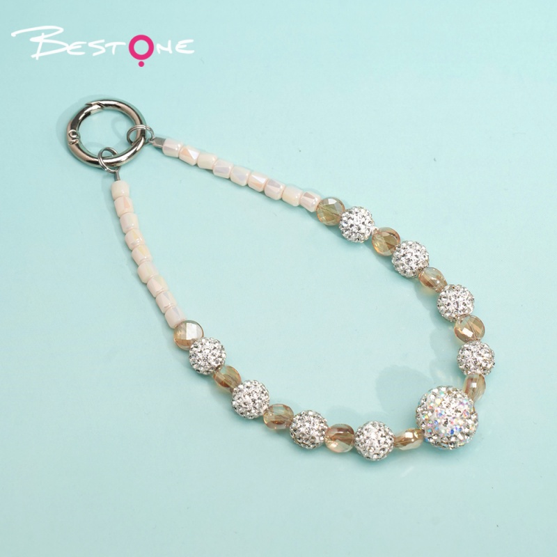 Материал изделия: Ограненные цилиндрические бусины из стекла с цветным напылением (5×6 мм) / Ограненные приплюснутые бусины (5×8 мм) / Круглые стразы (10 мм) / Металлическое пружинное карабиновое крепление