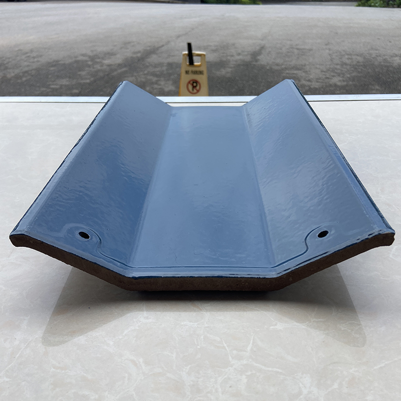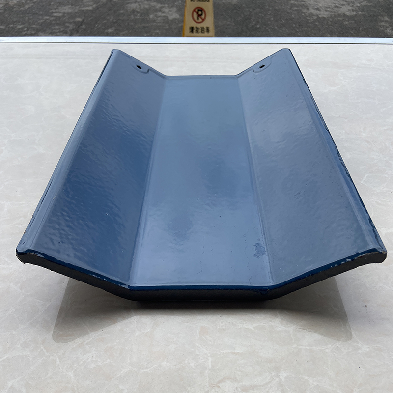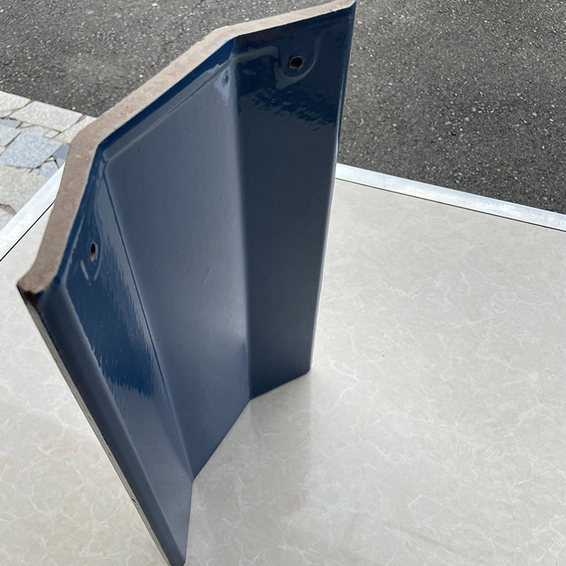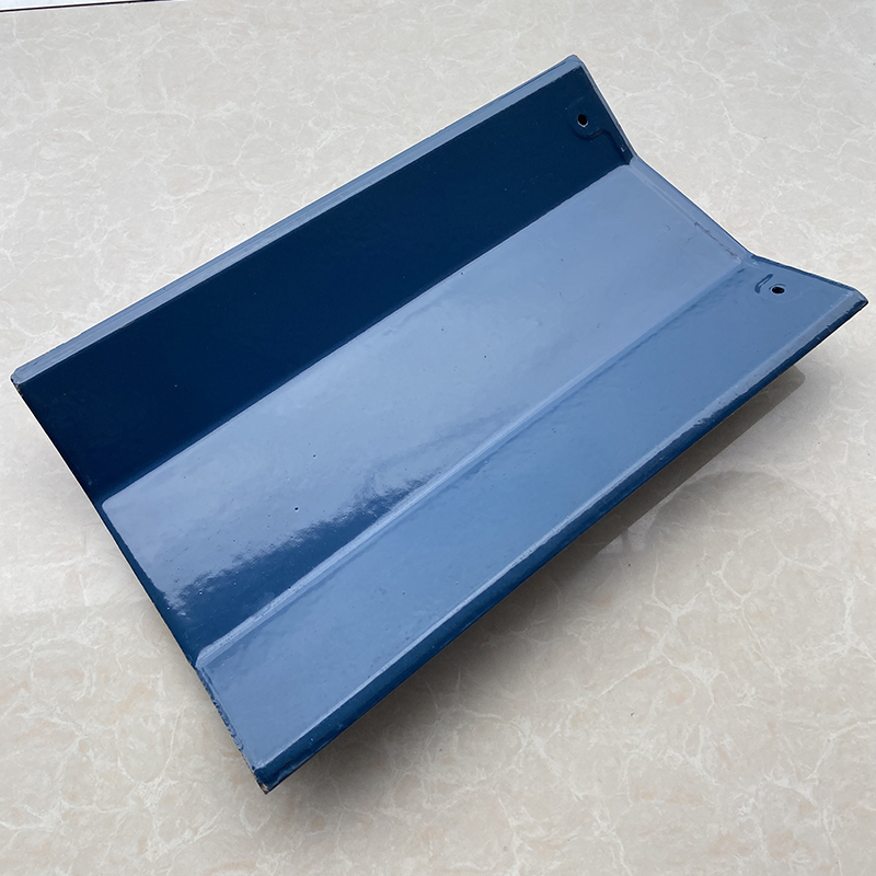 375ммx230мм Кровельная черепица с синим кристаллическим глазурованным покрытием, используя фарфоровой глины сырья тонкого помола заготовки, большой тоннаж автоматический пресс формования, односторонняя глазурь, 1130 градусов ролик печи непрерывного обжига. Внешний вид продукта нежный и яркий, продукт имеет хорошую водопроницаемость, хороший эффект соединения для сложных крыш, низкое водопоглощение, высокая прочность на изгиб, хорошая теплостойкость и морозостойкость.