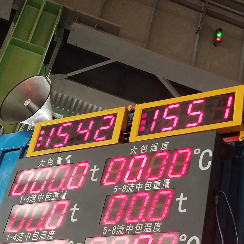 Крупногабаритный дисплей температуры жидкой стали является «центром визуализации данных» измерительной системы. Его ключевое преимущество заключается в точном отображении информации в реальном времени, обеспечивающем наглядное представление данных о температуре жидкой стали и предоставляющем персоналу интуитивно понятную основу для мониторинга.