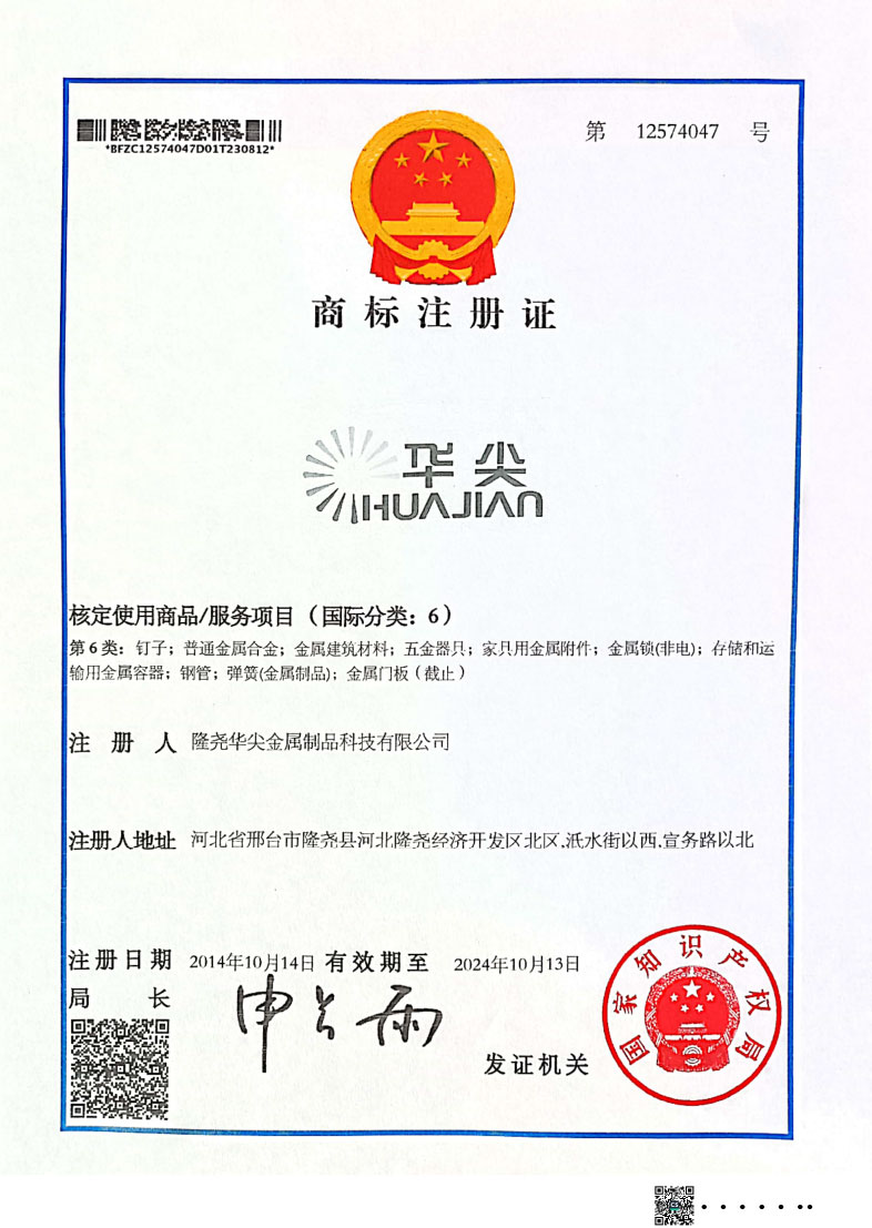 ООО Хуацзянь Производство Пневматических Гвоздей было основано в 1996 году и является известным крупным предприятием как внутри страны, так и на международной арене, объединяющим четыре основные отрасли: высококачественные пневматические гвозди, винты, упаковку и печать, а также химические клеи. Как единственная компания в Китае, достигшая комплексного производства пневматических гвоздей, винтов, клеев и металлической фурнитуры от торговли сырьем до готовой продукции, мы посвящены созданию отечественного бренда в Китае.