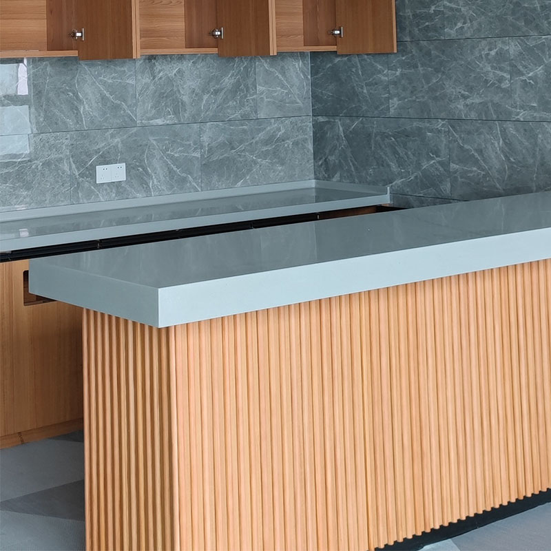 Кухонная столешница из акрилового искусственного камня сочетает в себе красоту и практичность. Ее поверхность из акрилового материала, отличный блеск, нежная текстура, для придания кухне модного стиля. Она обладает хорошей прочностью, на ней нелегко образуются царапины или разрывы из-за ежедневной рубки и ударов, она обладает высокой прочностью. Внутренние корни искусственного камня прочны и стабильны, хорошо сопротивляются давлению, выдерживают все виды кухонной утвари, тяжелые предметы, размещенные, и плотно сочетаются с акрилом, столешницы нелегко деформировать. Разработанные в различных стилях, подходят для различных кухонных декоров. Уборка также очень проста, пятна трудно прилипают, протрите влажной тканью, и они будут как новые. С точки зрения установки, относительно легкий вес, простота установки, может быстро создать идеальное рабочее пространство кухни.