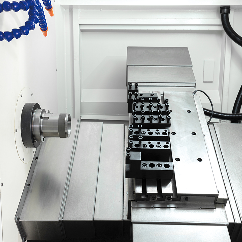 Поддерживает стержни диаметром 45 мм со скоростью вращения 4000 об/мин, шпинделем мощностью 5,5–7,5 кВт и большим рабочим пространством, идеально подходит для мощной токарной обработки и многоосевой обработки.