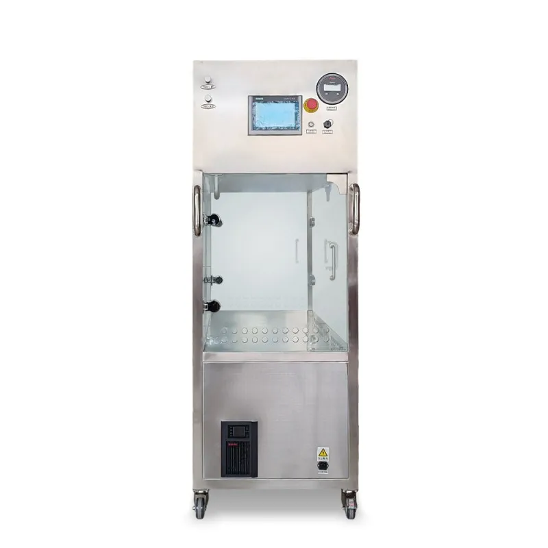 Оборудование имеет каркас из нержавеющей стали марки 304 с шлифованной поверхностью и гладкими сварными швами, обеспечивающими эстетичный вид. Рабочая зона соответствует требованиям зоны класса А по GMP, достигая уровня чистоты Класс ИСО 5. Система управления на основе одноплатного контроллера обладает высокой управляемостью и простотой эксплуатации. Манометр перепада давления осуществляет мониторинг давления по обе стороны фильтра в реальном времени. Источник бесперебойного питания оснащен аккумулятором 36 В постоянного тока/65 А·ч, обеспечивающим непрерывную работу в течение 4–6 часов.