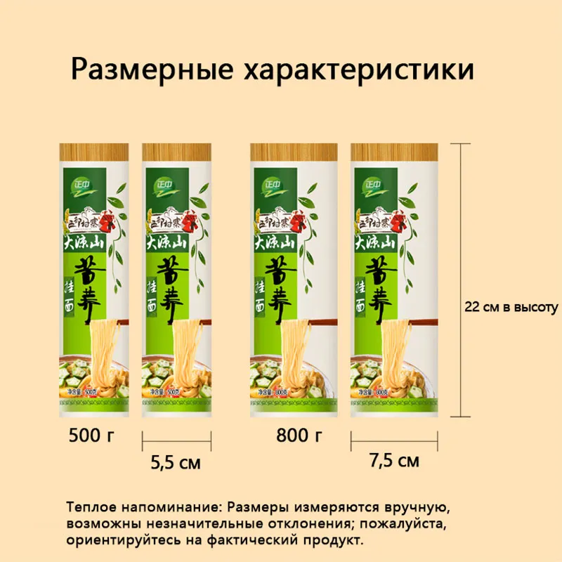 Соблюдение традиционной технологии естественной сушки позволяет сохранить природную питательную ценность гречихи татарской и избежать потери качества из-за карамелизации. Научно выверенная пропорция муки из гречихи татарской и пшеничной муки обеспечивает лапше устойчивость к развариванию, отсутствие слипания и ломкости. После варки лапша остаётся упругой и гладкой, с богатым ароматом пшеницы и гречихи, создающим сложный и гармоничный вкус.