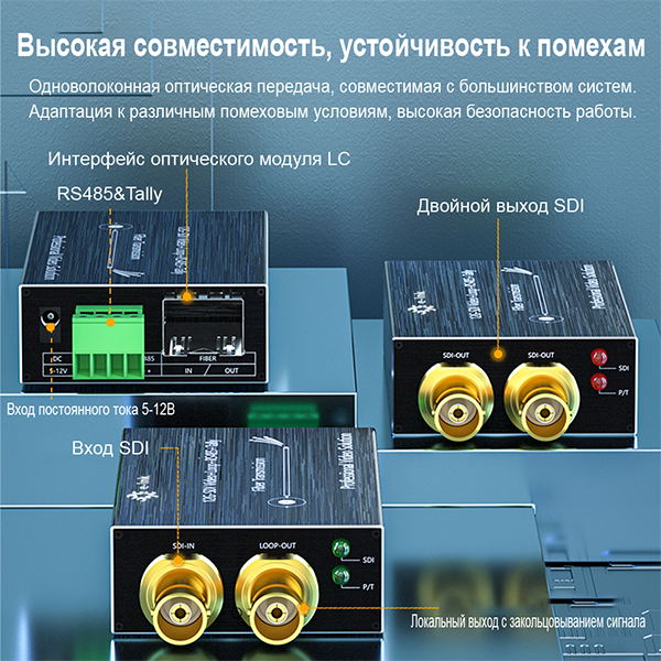 1. 1 канал 12G-SDI видео и Tally и обратный RS485 по оптическому волокну