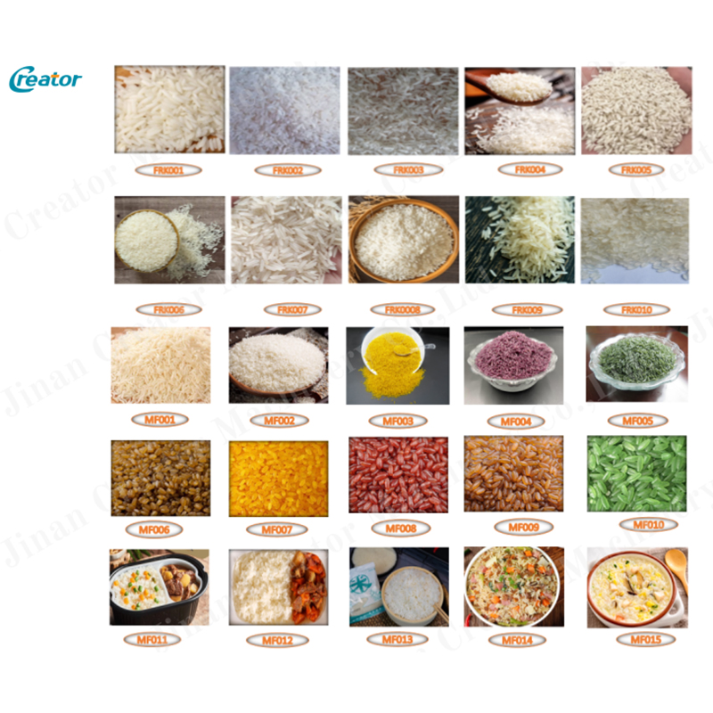 Мы используем двухвинтовые экструзионные технологии, берем сломанный рис в качестве основного сырья, тонко фрезерные и смешивание с питательными веществами премикс другие зерновые капли, после кондиционирования с паром и водой, мука войти в экструдер, чтобы регрекулировать, форма и размер могут быть изменены.