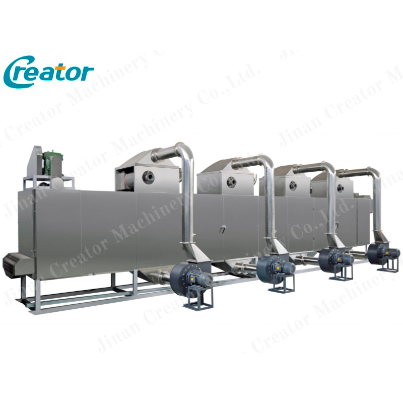 Сухие гранулы охлаждаются до температуры, близкой к комнатной, проходя через транспортёр с системой охлаждения. Это заключительный этап, позволяющий окончательно подготовить продукт к упаковке и отгрузке.