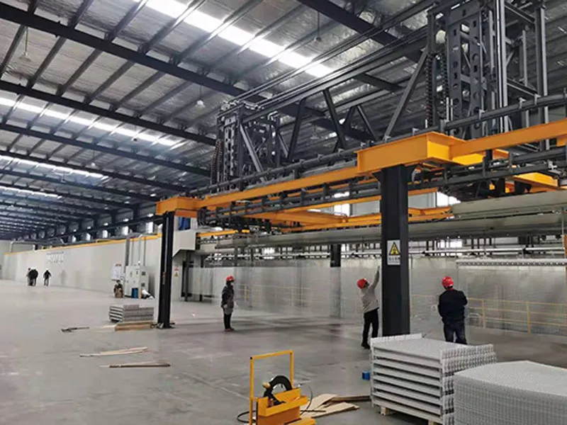 Рабочие монтируют полностью автоматическую линию нанесения порошкового покрытия для алюминия в Саудовской Аравии: