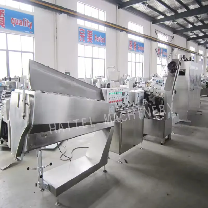 Данное оборудование представляет собой полностью автоматизированную линию для штамповки сферических леденцов, предназначенную для производства классических сферических леденцов на палочке, а также леденцов со сферической жевательной резинкой в качестве начинки.