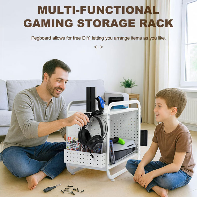 Практичный подарок для геймеров, идеально подходящий для дней рождения или новоселья. Помогает поддерживать порядок и обеспечивает легкий доступ к консолям, контроллерам, наушникам и игровым дискам.