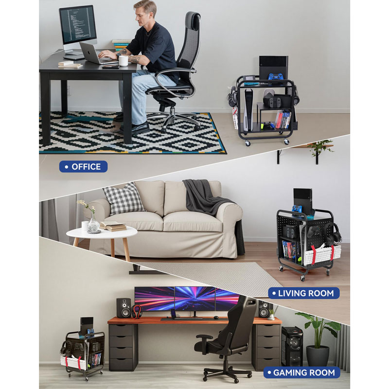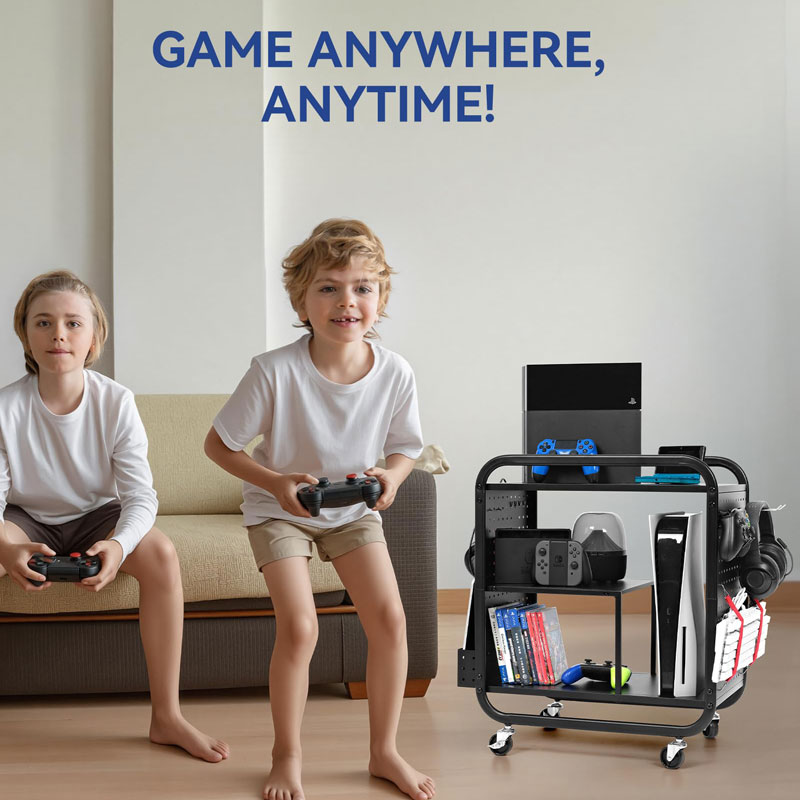 Перемещайте этот подвижный держатель для игр без усилий между комнатами, будь то из гостиной в спальню или игровую комнату. Запираемые ролики обеспечивают стабильность и надежность, что идеально подходит для любой игровой установки.