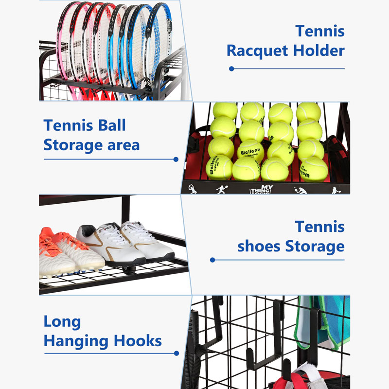 Компактная конструкция с большой вместимостью делает ее идеальной для теннисных клубов, тренировочных центров или домашнего гаража. Помогает поддерживать чистоту в помещении и держать снаряжение под рукой.