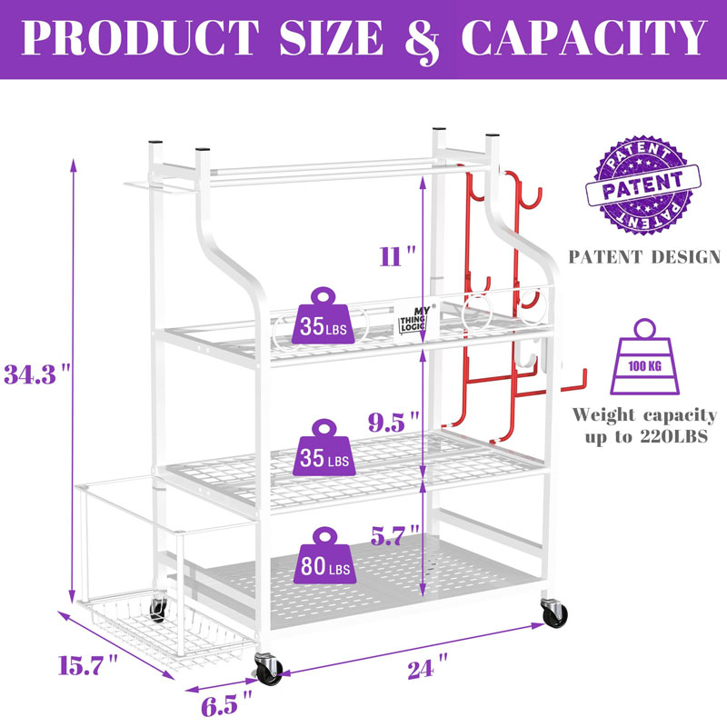 Размеры этого органайзера для тренажерного зала составляют 40,4 дюйма (длина) x 15,7 дюйма (ширина) x 34,3 дюйма (высота). С помощью инструкции вы можете легко собрать всю конструкцию.