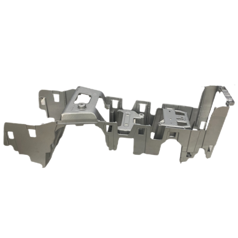 Эта пресс-форма горячекамерного литья предназначена для производства каркасов приборных панелей премиальных автомобилей. Используя усилие смыкания 32 000 кН, она обеспечивает прецизионное формование основного каркаса приборной панели из магниевого сплава весом 4,3 кг, достигая 50% снижения массы при сохранении требований к безопасности при столкновениях. Пресс-форма оснащена десятью гидравлическими системами вытяжных стержней и специальными коррозионностойкими сердечниками, что позволяет идеально воспроизводить сложные тонкостенные структуры за одну операцию литья. Инновационная система защиты расплава и трехзонная технология температурного контроля эффективно предотвращают окисление магниевого сплава, обеспечивая пористость изделия ниже 0,3%. Особенно разработанная усиленная сетчатая структура повышает крутильную жесткость компонента на 35%, что полностью соответствует требованиям интеграции многофункциональных систем интеллектуального салона. Модульная конструкция пресс-формы с быстрой сменой компонентов позволяет сократить время переналадки до 20 минут, предлагая идеальное решение для электромобилей, сочетающее легкость и высокую жесткость.