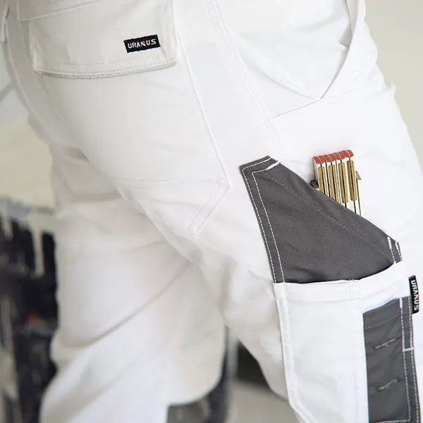 Рабочие брюки U23P003 Издание для художников — это облегающие рабочие брюки, специально разработанные для профессиональных маляров, которым важны стиль и функциональность. Основная ткань — это парусиновая ткань W/R плотностью 245 г/м², состоящая из 65% полиэстера и 35% хлопка, обеспечивающая прочную, но дышащую структуру с водоотталкивающими свойствами, которые защищают от лёгких брызг. Чистый, чистый белый цвет брюк создаёт чёткий, профессиональный образ, подходящий как для жилых, так и для коммерческих проектов.