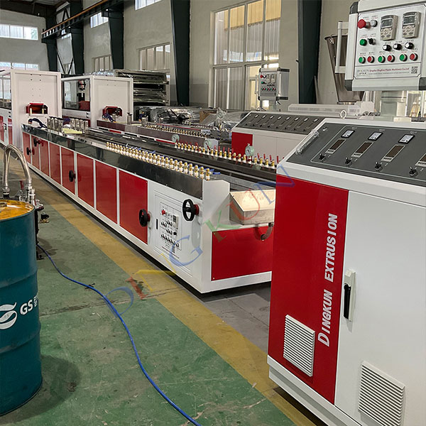 Машина для производства ПВХ-профилей путем смены форм может производить различные изделия из ПВХ, такие как стеновые панели из ПВХ, оконные профили из ПВХ, дверные профили из ПВХ и т. д.
