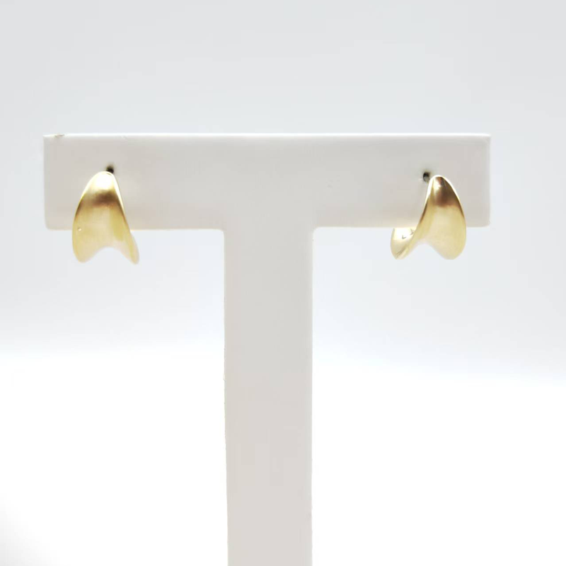 Это пара золотых сережек.Он имеет простую дугообразную форму и изготовлен из меди с позолоченным покрытием. Его стиль прост и универсален, подходит для повседневной носки и легко сочетается с различными стилями одежды, демонстрируя сдержанное чувство моды.
