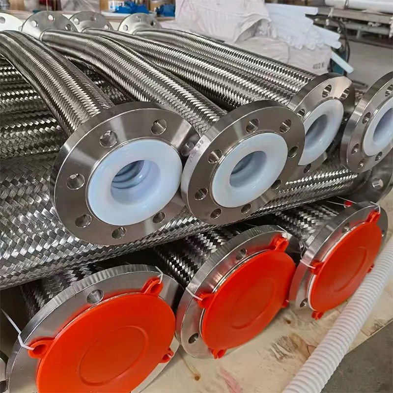 Металлический внешний слой обеспечивает механическую прочность, а PTFE-покрытие нетоксично, не имеет запаха и не загрязняет окружающую среду, что соответствует гигиеническим требованиям таких отраслей, как фармацевтика и пищевая промышленность. Оно также предотвращает риск коррозии и утечек, вызванных воздействием среды на металлические трубы.