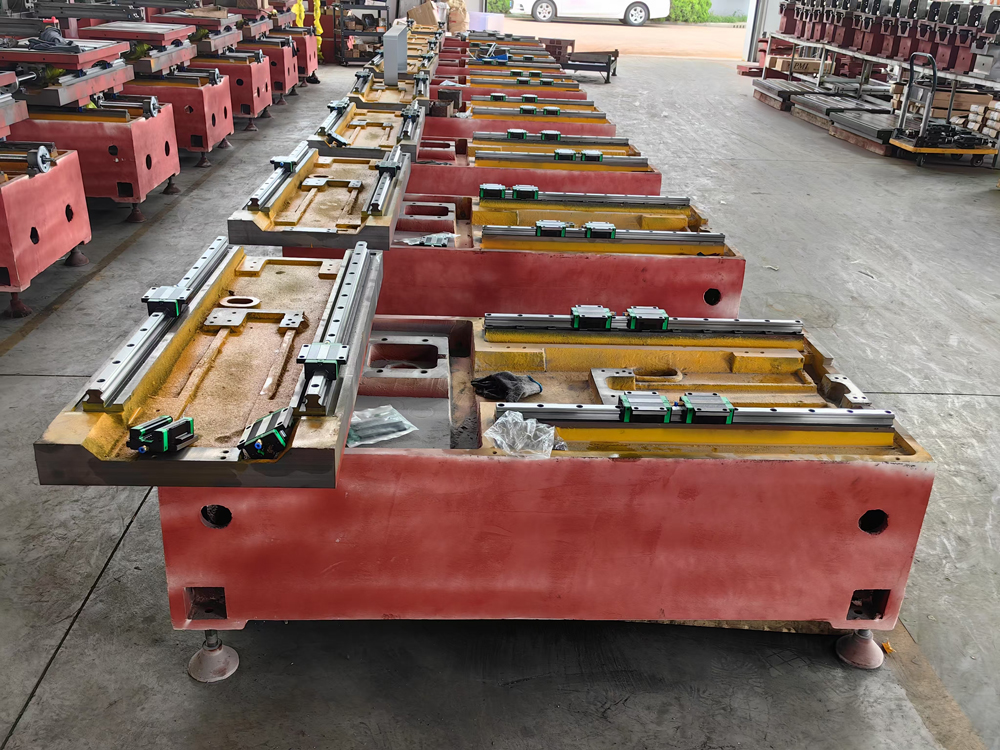 Станина станка, колонна, рабочие столы и ряд других базовых корпусных узлов станка изготовлены из HT300 высокопрочного мелкозернистого чугуна – механита. обеспечивают высокую стабильность и точность обработки, в течение, долгого периода эксплуатации.