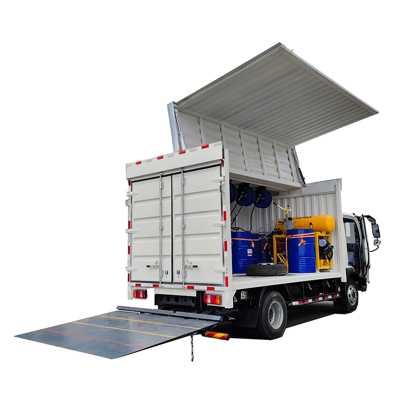 Оснащённый генератором и воздушным компрессором, автомобиль обеспечивает стабильную подачу электроэнергии, обеспечивая нормальную работу такого оборудования, как пневматические смазочные устройства и дозаторы смазочного масла.