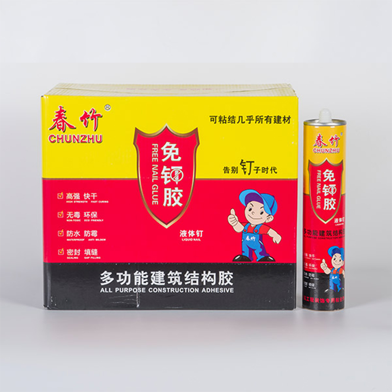 2.Отрежьте отверстие в тюбике, используйте клеевую насадку, чтобы разорвать алюминиевую фольгу в клеевой насадке, наденьте клеевую насадку и выдавите ее с помощью герметизирующего пистолета. (Используйте более легкие материалы) Выдавите несколько полосок клея без гвоздей в форме зигзага, с расстоянием между каждой полоской 30 мм, прижмите покрытую клеем сторону к точке склеивания, а затем осторожно потяните ее в разные стороны, повторите несколько раз, а затем плотно прижмите обе стороны после испарения растворителя. (Используйте более тяжелые материалы) Нанесите гвозди без клея указанным выше способом, а затем используйте такие инструменты, как зажимы, гвозди или шурупы, чтобы зажать или прибить две склеиваемые стороны. После того, как клей высохнет (около 24 часов), снимите зажимы. Клей без гвоздей можно перемещать в течение 20 минут, чтобы отрегулировать положение склеивания.