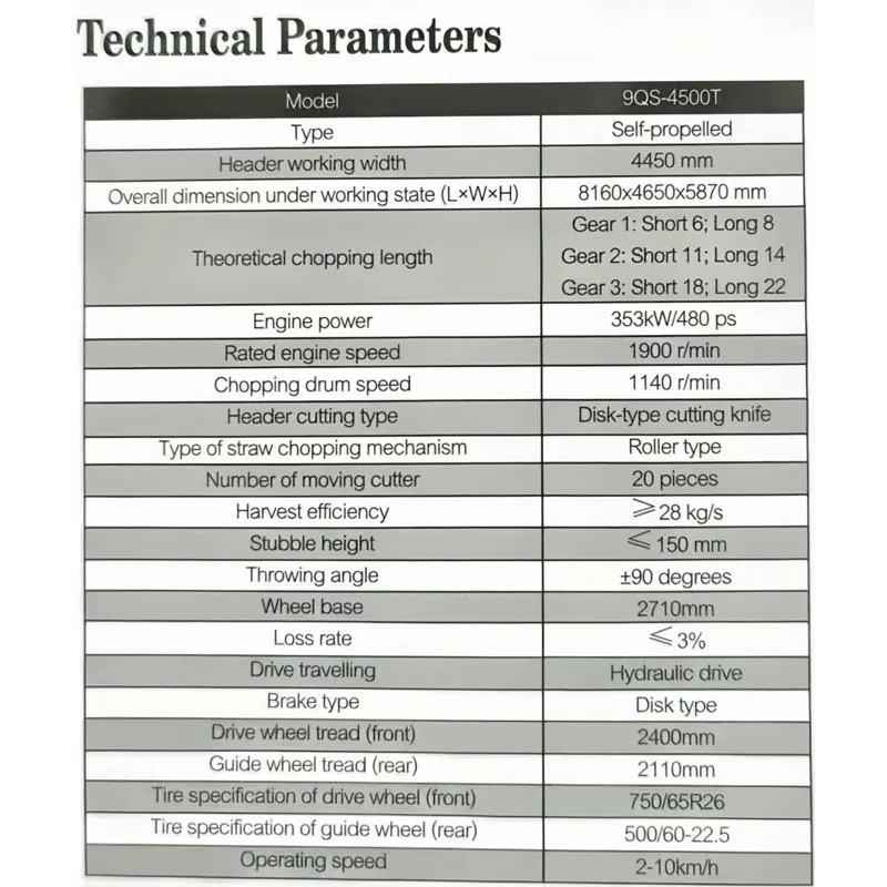 Meidi 9QS-4500Т самоходный кормоуборочный комбайн — это высококлассный интеллектуальный крупногабаритный силосоуборочный комбайн. Компоновка основной машины полностью новая, а внутреннее пространство облегчает техническое обслуживание. Оснащенный жаткой с шириной захвата 4,5 метра и двигателем мощностью 480 лошадиных сил, комбайн значительно повышает эффективность работы (уборка силосной кукурузы может достигать 100 тонн/час). Новый режущий барабан и измельчитель зерна большего диаметра обеспечивают эффекты резки кукурузы и дробления зерен, сопоставимые с машинами мирового класса. Просторная кабина с кондиционером создает более комфортные условия труда. Многофункциональный подлокотник и рычаг управления позволяют легко контролировать процесс уборки. Передовая и надежная технология и превосходное качество уборки кормоуборочных комбайнов Meidi заслуживают большего доверия.