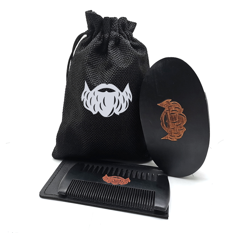 3.Изысканный дизайн : на расческе и щетке выгравированы узоры, а на сумке для хранения — логотип в виде бороды, общий дизайн узнаваем.