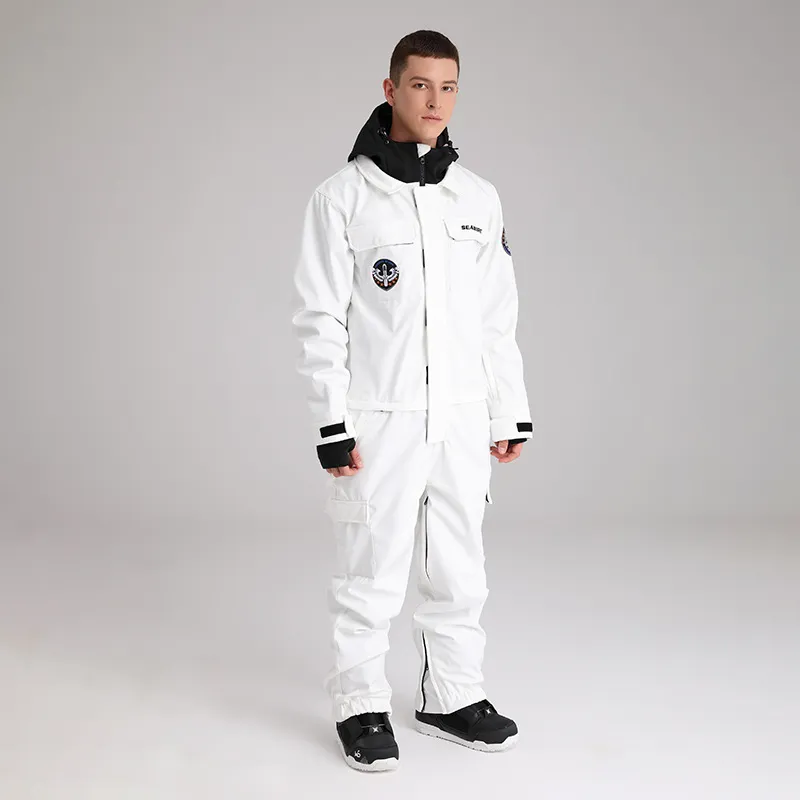 1、Лыжный костюм мужской изготовлен из высококачественной ткани, устойчивой к трению о снег и царапинам от веток, он прочный и долговечный.