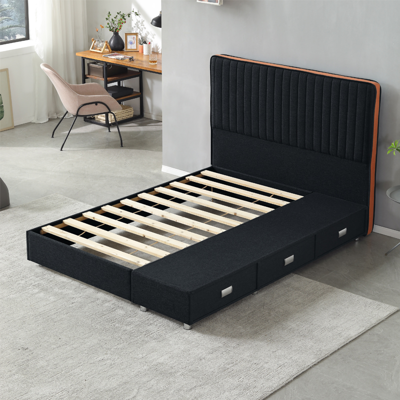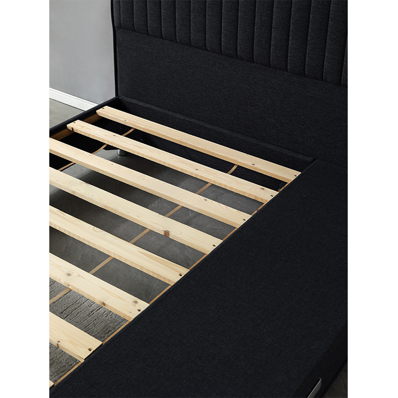 Каркас этой кровати с обивкой имеет прочное реечное основание, обеспечивающее надежную поддержку для спящего. В комплект входят 3 выдвижных ящика, предоставляющих достаточно места для хранения.