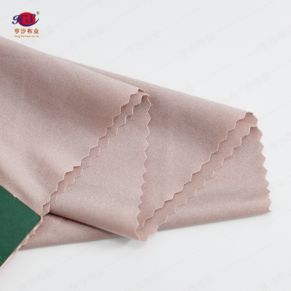 91215 N простая глянцевая ткань изготовлена из 88% нейлоновой нити FDY и 12% спандекса полотняного переплетения. Благодаря интеллектуальному соотношению натяжения основы и утка (основа 12cN: уток 8cN) плоскостность поверхности ткани достигает 98,5%, а коэффициент вариации однородности блеска составляет ≤3%. Вес 110 г/м² достигается за счет процесса 22 иглы/дюйм, толщина ткани составляет 0,25 мм, а коэффициент теплового сопротивления составляет 0,08 м²・К/Вт при ношении летом, что на 20% ниже, чем у хлопчатобумажной ткани. Воздухопроницаемость достигает 3200 см³/(см・ч), что подходит для длительного ношения в обтяжку. Спандекс равномерно распределен, образуя «эластичную матрицу» с коэффициентом бокового упругого восстановления 95,6% и коэффициентом продольного упругого восстановления 94,8%, которую нелегко ослабить после длительного ношения.