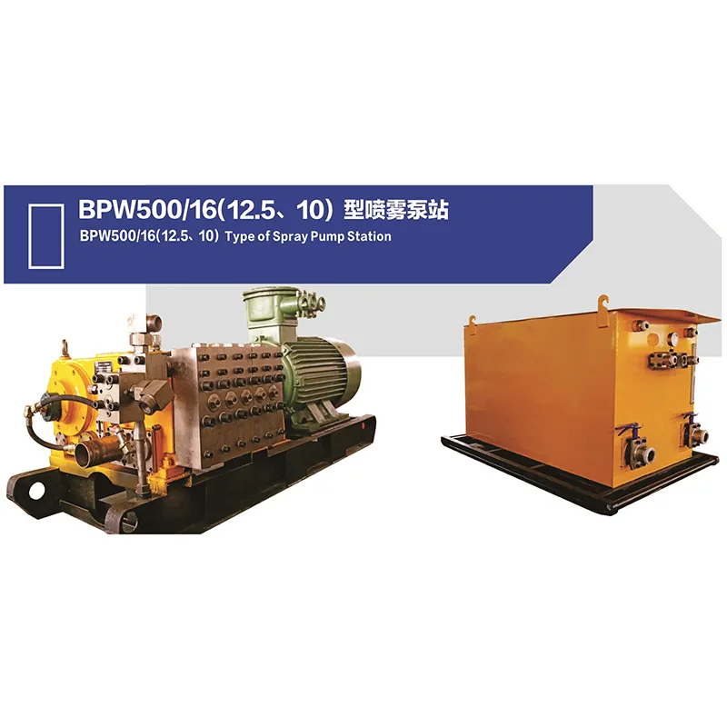Пятиплунжерный насос BPW500/16 (12,5, 10) и бак чистой воды XP500/30 образуют насосную станцию ​​пылеподавления, обеспечивающую необходимое давление для пылеподавления методом распыления на различных горнодобывающих машинах и проходческих комбайнах подземных угольных шахт. Насосная станция состоит из двух насосов и бака, один из которых используется, а другой находится в резерве.