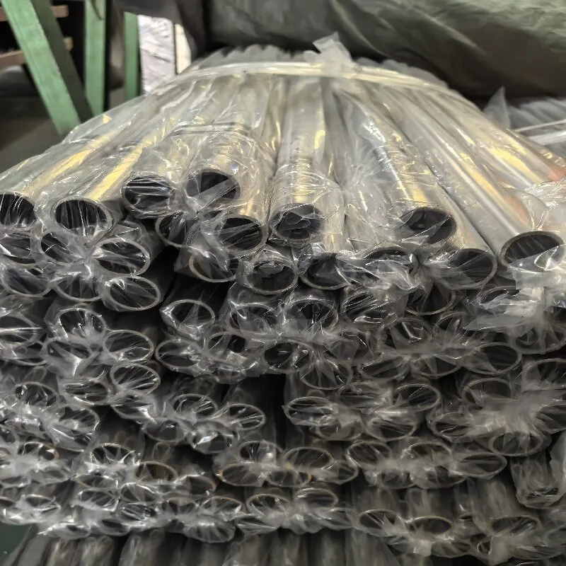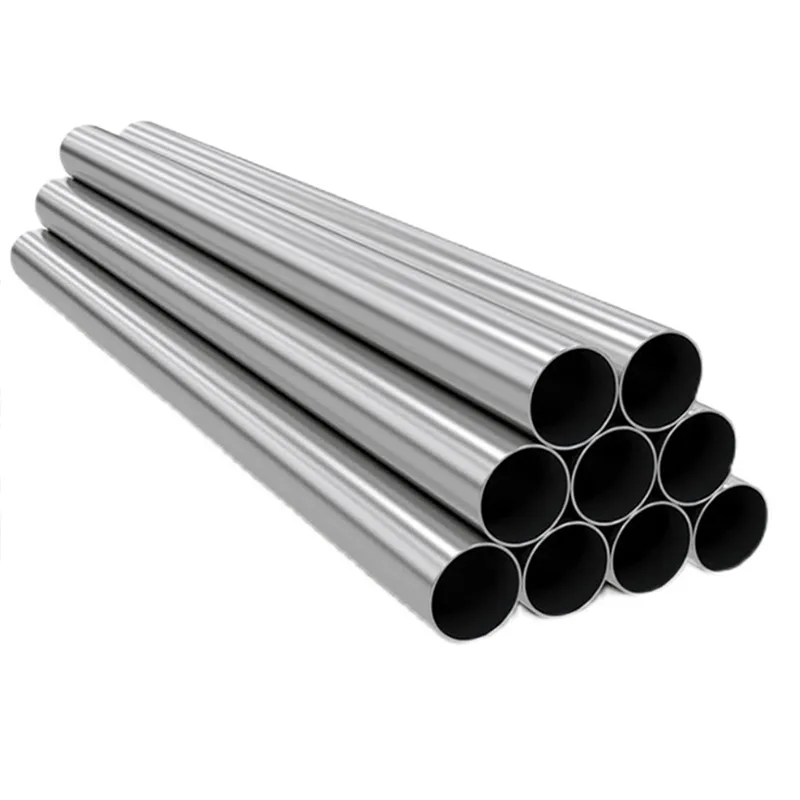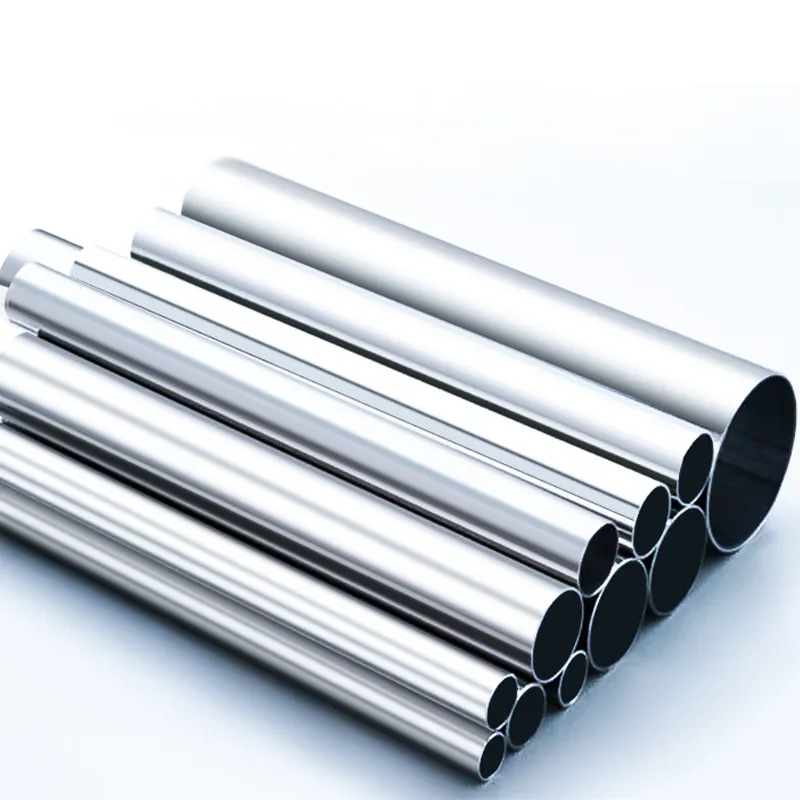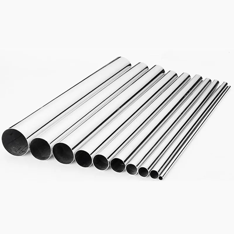 Нержавеющая круглая труба с зеркальной поверхностью, обработанная механической полировкой для достижения высокой степени блеска.